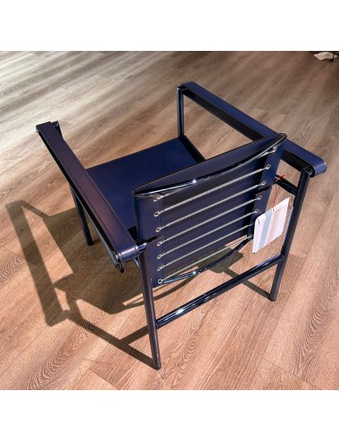 Nel rispetto dell’estetica, delle caratteristiche e delle dimensioni del modello originale, 1 Fauteuil dossier basculant, 60 viene oggi proposta con struttura in tubolare metallico in una nuova finitura blu lucida, abbinata alla seduta autoportante in cuoio blu.