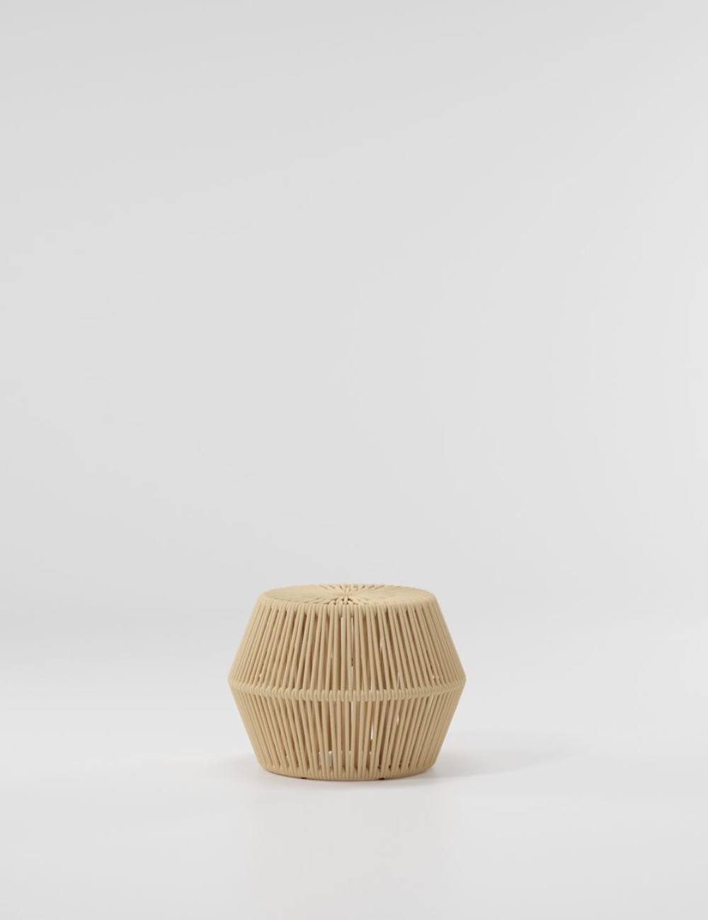 La sua estetica si distingue per la forma circolare e la superficie esterna rivestita da una corda intrecciata, disponibile in un’ampia gamma di colori. Questa lavorazione artigianale conferisce al pouf un aspetto dinamico e moderno, capace di adattarsi a diversi stili di arredamento outdoor.