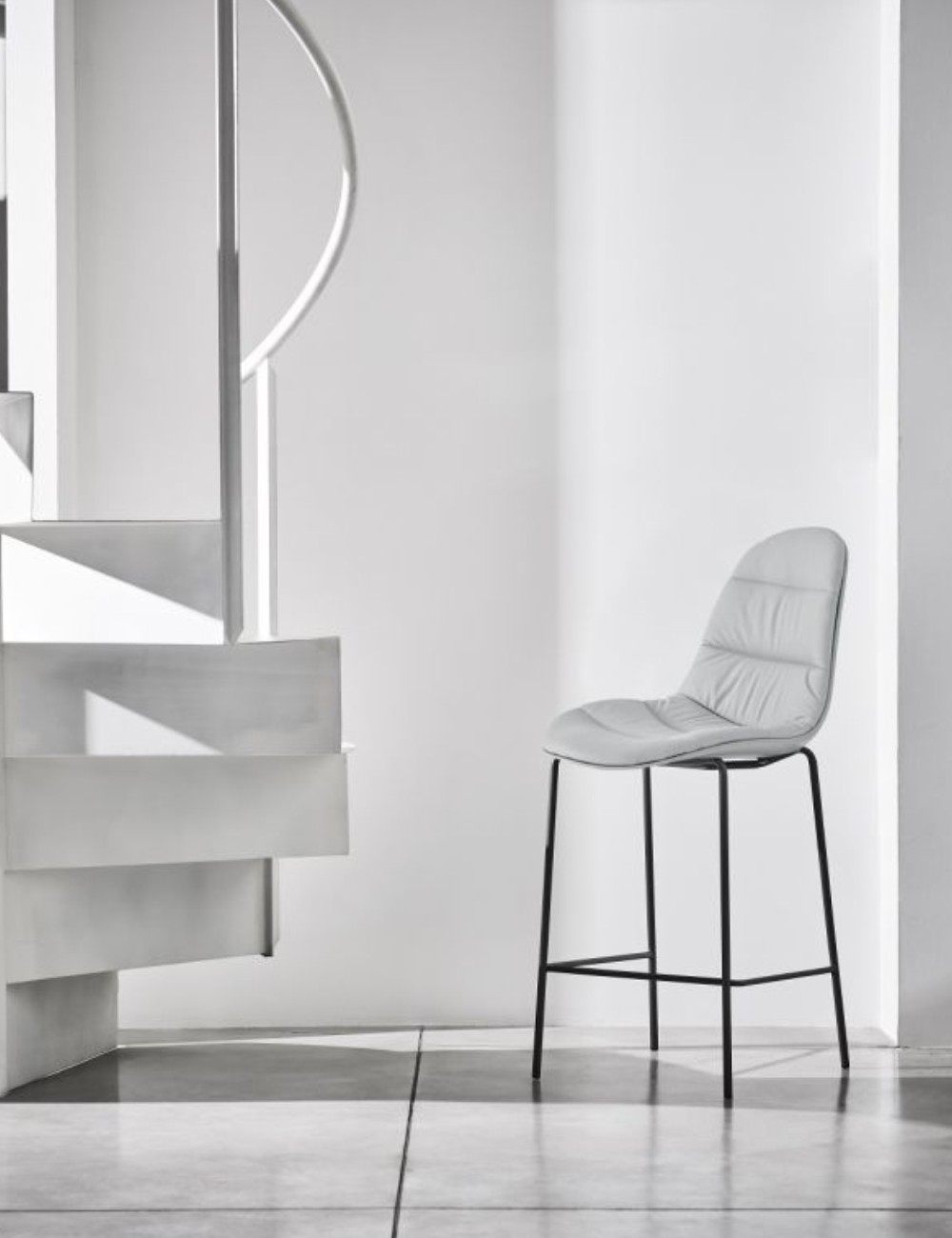 Lo sgabello Mood di Bontempi combina design essenziale e versatilità, con struttura in acciaio laccato e scocca in polipropilene. Disponibile con rivestimento frontale imbottito in diversi tessuti e finiture, offre un'eccellente comodità ed è perfetto per ambienti moderni, sia residenziali che contract. Disponibile in varie altezze, aggiunge stile a ogni contesto.