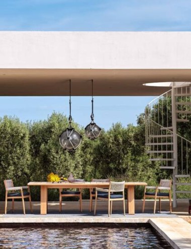 I tavoli della collezione Jeko uniscono design esotico e artigianalità sostenibile. Realizzati in ECOTeak riciclato da antiche abitazioni di Giava, sono disponibili in versioni basse o da pranzo con top in marmo bianco Carrara o cemento Pearl. Ogni pezzo esalta il contrasto materico tra le finiture naturali, offrendo un tocco coloniale e ricercato per ambienti indoor e outdoor.
