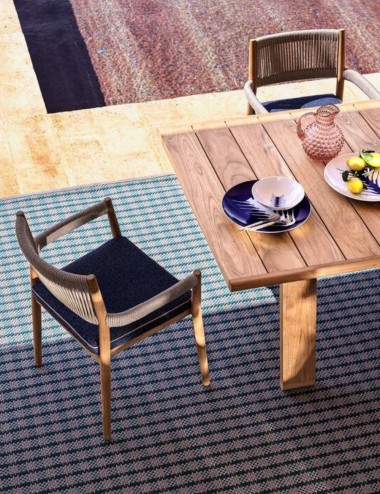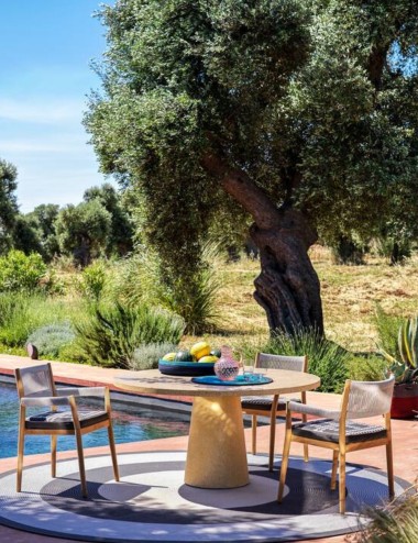 Il tavolo Dine Out di Cassina è un elemento d’arredo da esterno di alta gamma, disponibile in versione rotonda o rettangolare con piano in teak naturale. Le basi possono essere in cemento, terrazzo o con gambe in teak. Ideale per giardini, terrazze e ambienti hospitality, unisce design italiano, resistenza agli agenti atmosferici e raffinatezza estetica.