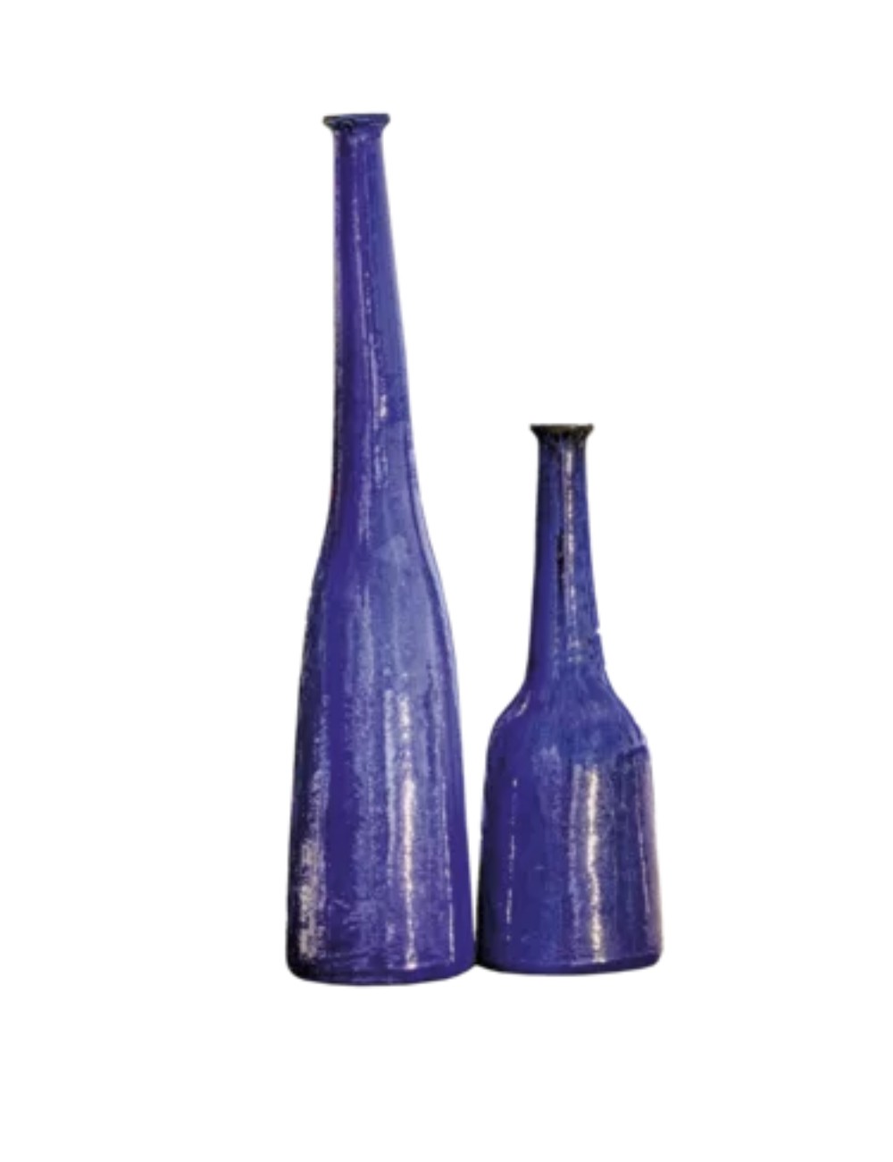 Proposte in tre tonalità di grande impatto visivo – blu intenso, bianco puro e grigio antracite – queste bottiglie decorative diventano protagoniste di ogni spazio, sia indoor che outdoor. Le loro forme eleganti e le dimensioni variabili in altezza e circonferenza le rendono estremamente versatili: perfette da esporre singolarmente per un accento minimal, oppure in gruppo per creare installazioni scenografiche.